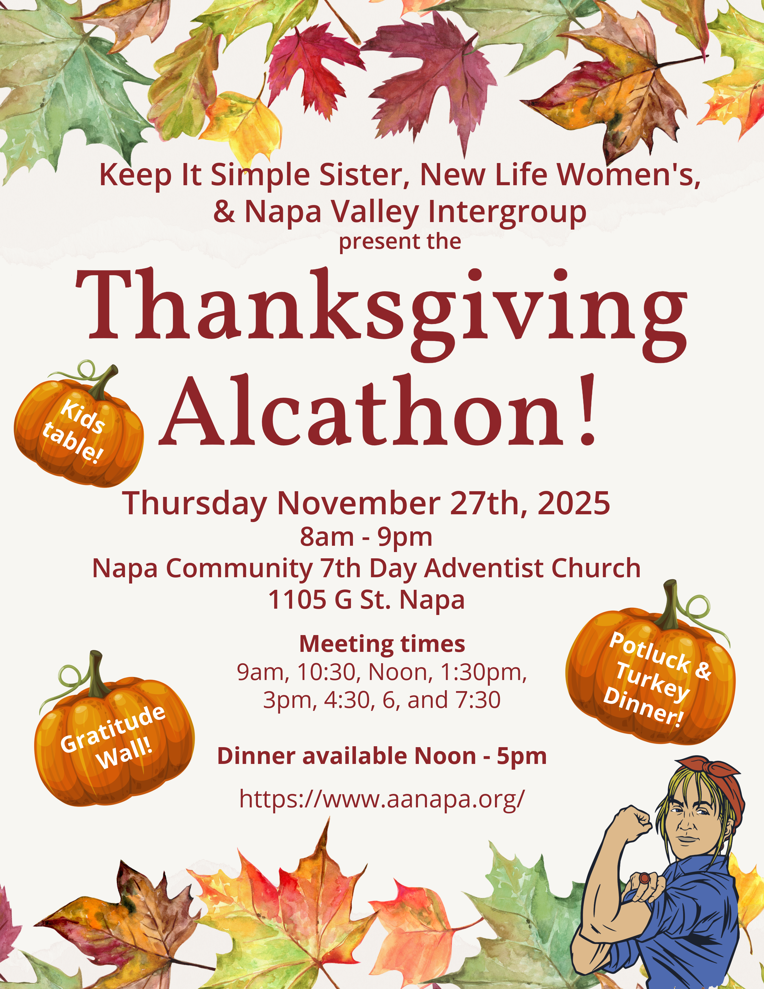 Keep It Simple Sister, New Life Women’s Group & Napa Valley Intergroup present the Thanksgiving Alcathon!